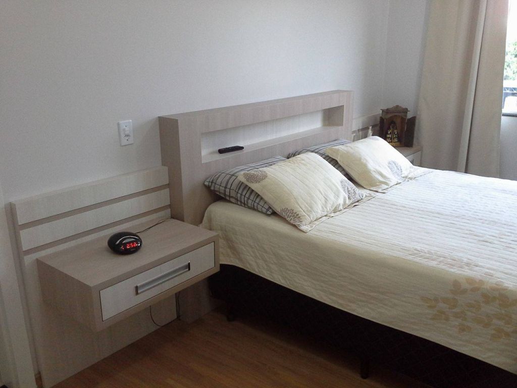 Cabeceira com nicho confeccionada em MDF BP Santada com Blanche e criados suspensos.