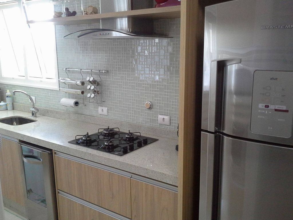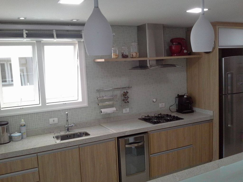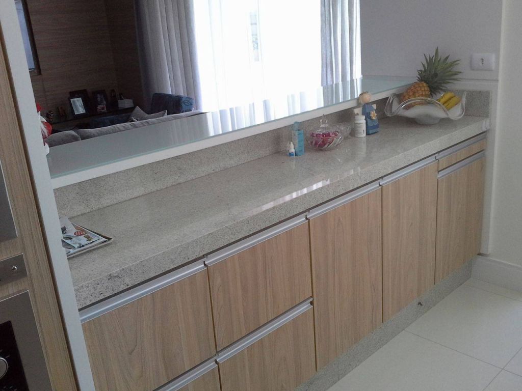 Cozinha confeccionada em MDF BP Tirol com puxadores grap e granito Acqualux
