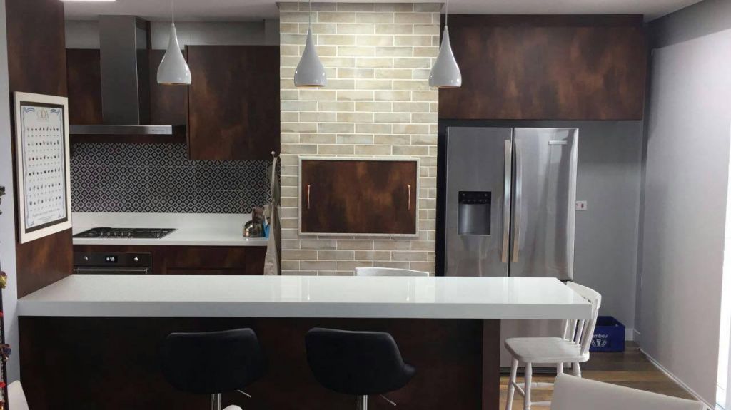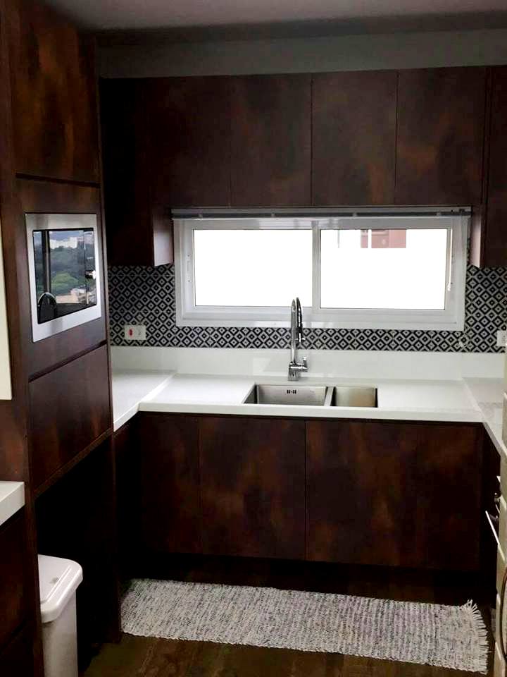 Levando em consideração todos os itens de eletros e portáteis, os móveis sob medida da Modelar transformam sua cozinha em um lugar sofisticado e moderno, aliando beleza e funcionalidade. O material escolhido para compor o mobiliário foi o MDF Rust da Duratex.