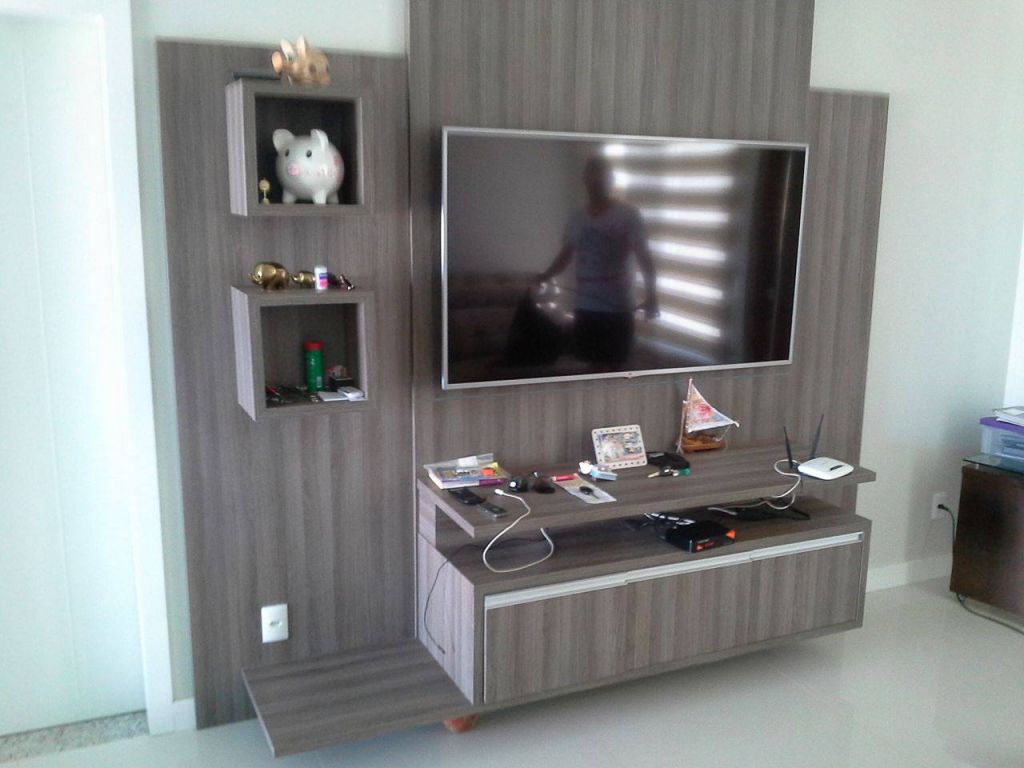 Home theater conforme projeto confeccionado em MDF BP com puxadores grap.